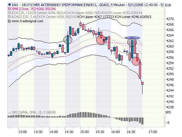 Habe die short Position wieder aufgenommen per 16:50 bei 4254, nachdem wieder im unteren KCH Feld geclosed wurde. -