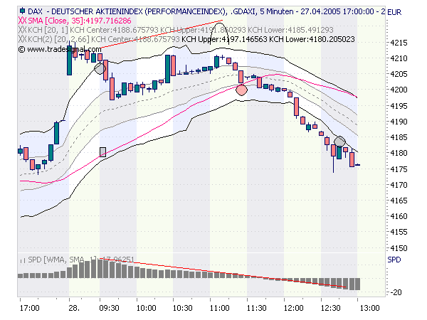 Um 11:25 war die Long-TRendlage im Dax5 beendet; Close innerhalb KCH1 (wie auch schon eine Kerze zuvor) und schon ist das Signal da (roter Kreis).