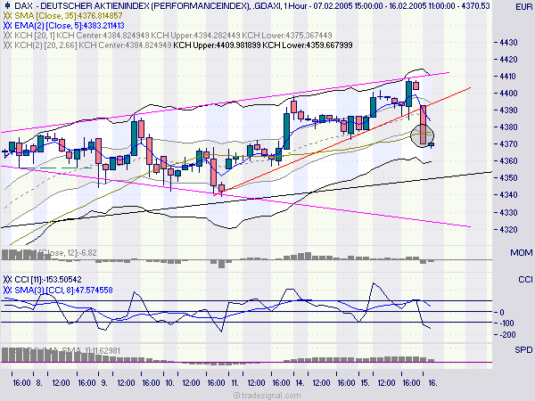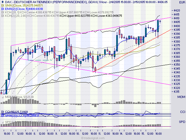 Bei Eingehen der Position schon war uns klar, daß ziemlich nahe Widerstände warten würden, die virtuell auch nachbörslich bei ca 4375 bestätigt wurden. Deshalb hat herkunft auch gestern abend schon die Position neutral geschlossen.