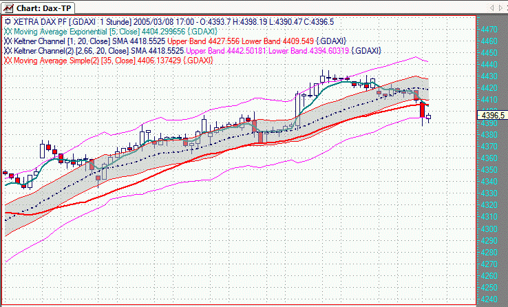 Positionen werden nur in Richtung dieser Trendlage gehandelt, bzw können bestehende Positionen in dieser Richtung auch bei Erreichen des KCH2 gehalten werden.