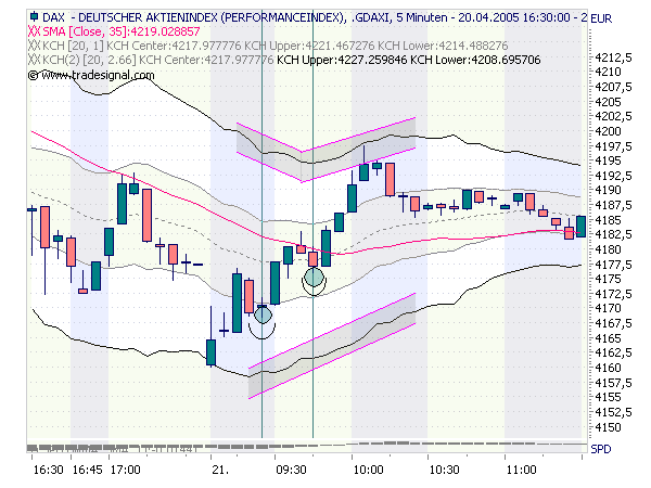 Deshalb noch als Hinzufügung eine Interpretation der KCH Kantenverläufe (im FDax sind die schon zur Eröffnung auf Long TRend umgeschwenkt - auch deshalb dort klarer):