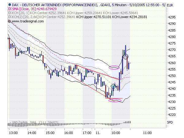 Ich denke, in vielen bis sehr vielen Zweifelsfällen lassen sich SIgnale mit Hilfe schon mal der KCH Kanten als auch der SMA TRendlage filtern; des weiteren helfen dann Chart/Candle-Formationen; auch hier wieder zugegeben ein nicht unerheblicher diskretionärer Anteil. Heute morgen aber war das eher 'herrschende Charttechnik Meinung', also die Bodenbildung bzw vorher die fehlende Bodenbildung.