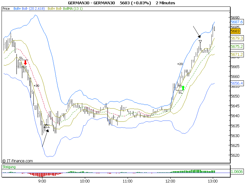 Irgendwo steht hier was Zusammenfassendes über die Bollinger Bänder, aber wo weiß ich auch nicht. Deshalb hier eine Kurzfassung: