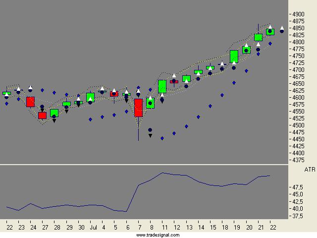 Stur nach System wäre heute mit ca. + 10 Punkte (1. Trailingstop)