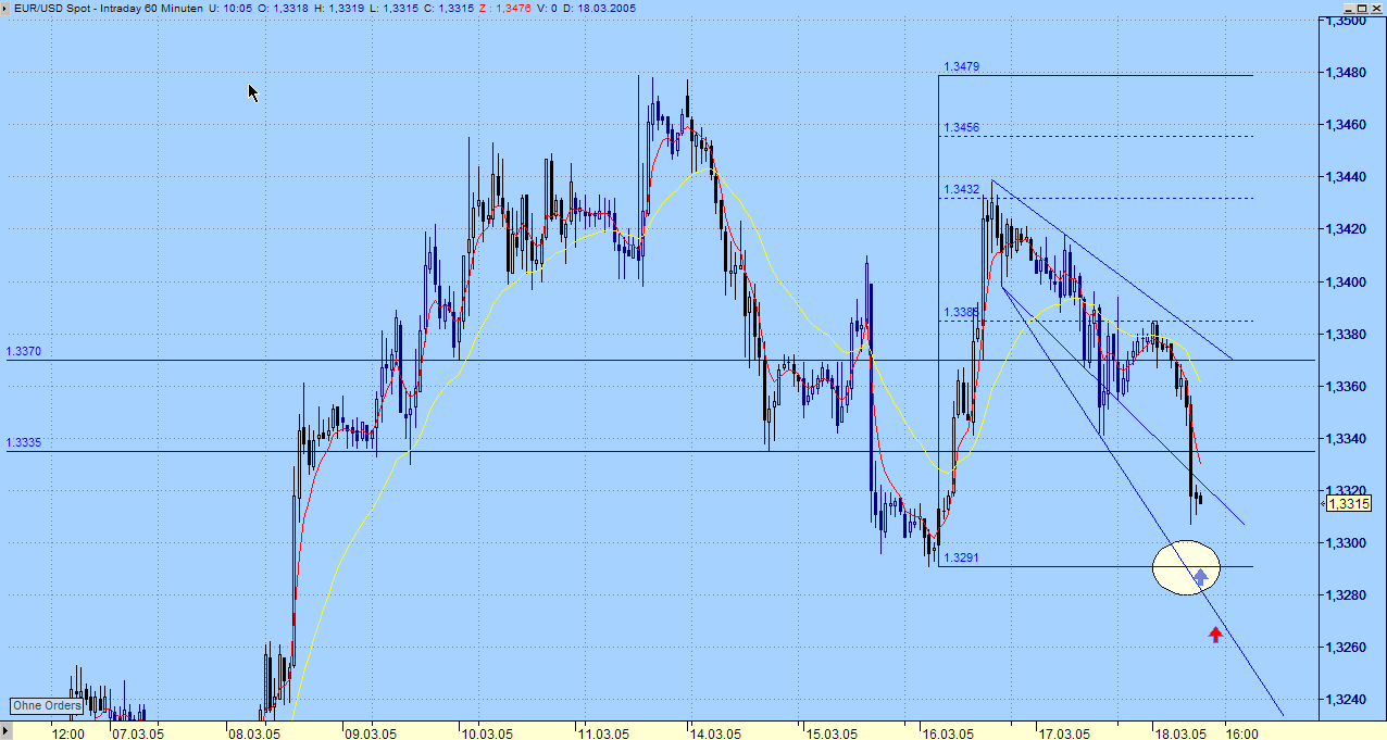 beispielcharts eur/usd (mein gedachter entry wäre bei 1.3291 - klaa1 hat mich dann aber ein wenig korrigiert und gemeint, bei ca. 1.3280 (trendkanal) wäre auch ein interessanter einstieg.