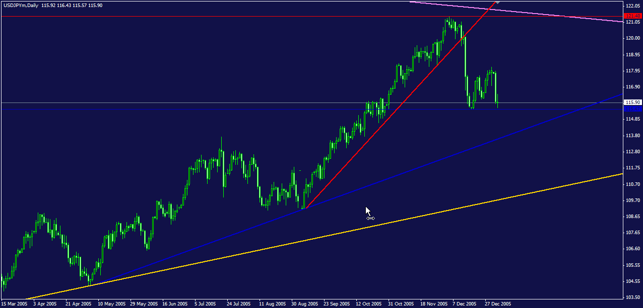 a.) der Kurs unter die Linie von 115,45 fällt ( bis jetzt zweimal gehalten)