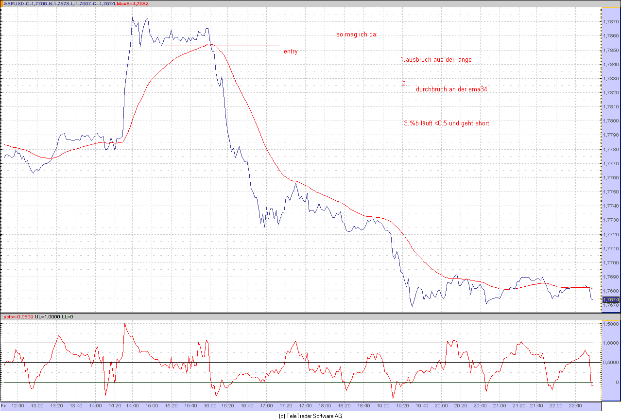 josh,ich habe mir die möglichkeiten im tageschart-signal angesehen.die meisten trades laufeb tatsächlich in ein beachtliches plus.was ich nicht durchstehen würde sind phasen,in denen ich bereits 130 pips im plus bin,dann geht es 160 pips ins minus und dann 450 pips ins plus.auch das gibt es.ich müßte mein stop nach dem entry 200 pips entfernt setzen.was mir aber gefällt,da ich ein überzeugter trend trader bin.das short signal im 60 tf und tageschart einzeichnen.dann die signale im kleineren trend traden.z.b short im 60 tf und die signale im 5 tfr traden.oder short im tageschart und die signale im 60 tf traden.ich stelle dir meine signale für den cable rein.