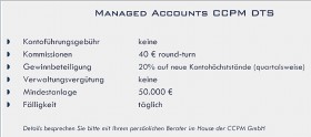 So kann ich eigentlich jedem nur raten gute Managed Accounts (CTAs) für sich handeln zu lassen. Wichtig ist aber, dass es sich um tatsächliche Performance und nicht nur hypothetische Modellperfromance handelt. Auf der Portfoliokonzept Seite ist das m.E. zuwenig auseinander gehalten. -