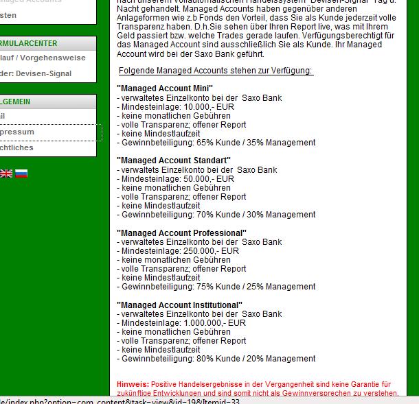 Performence und Forum boten kein negatives Bild. Also habe ich mir im April einen MA eingerichtet. Als die Performenceangaben kurz darauf von der Seite entfernt wurde, habe ich mich schon gewundert aber die Verträge waren schon geschlossen.