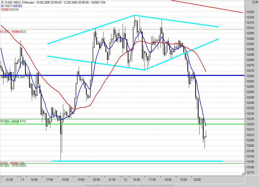 Solche extremen Bewegungen stellen eher die Ausnahme dar. 50% der Zeit bewegen sich die Kurse trendlos und da gewinnt man mit Trendfolger keinen "Blumentopf". Insofern arbeite ich generell mit Profittargets und Reentrys. Und das Kursziel der Formation lag, worauf ich auch hingewiesen habe, bei 10185 und wurde dann auch erreichtDieser Beitrag wurde bereits 1 mal editiert, zuletzt von „Exlibris“ ()