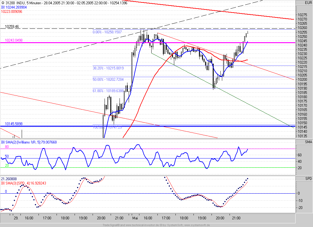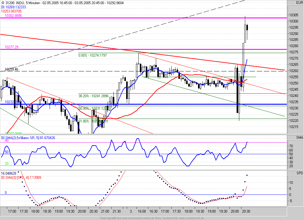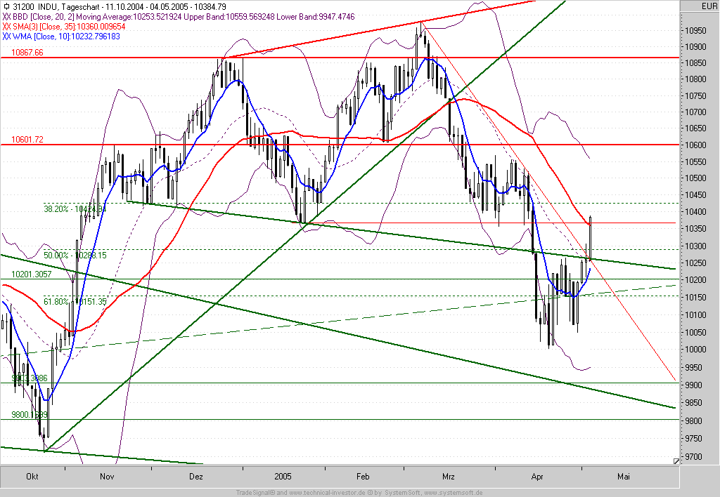 Wenn ich mir den Tageschart des Dow mit seinem "höheren Tief" und den Ausbruch aus seinem kurzfristigen Abwärtstrend so betrachte, war dies wohl der Startschuss für eine Mai-Rally. Passt der alte Spruch "Sell in May and go away" etwa nicht mehr?