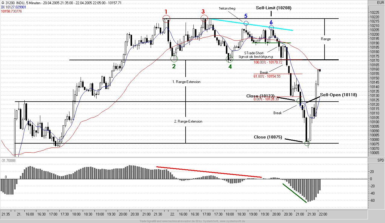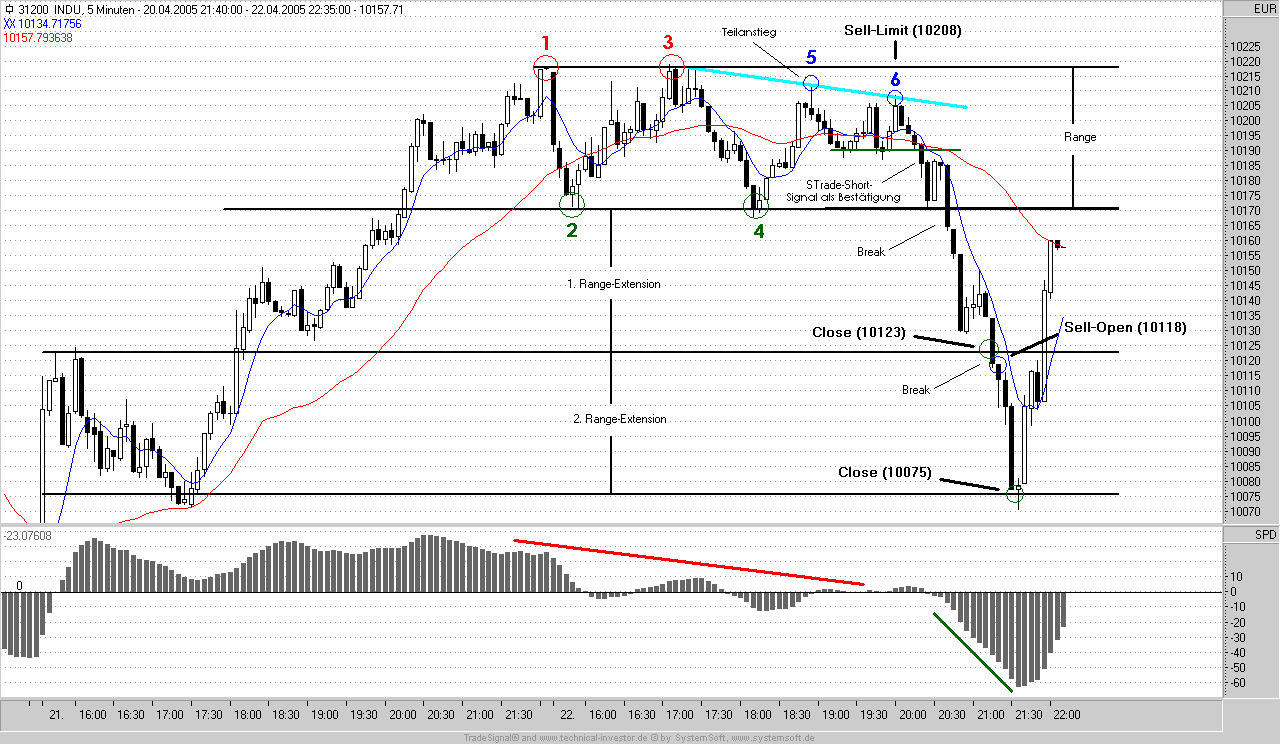 Das Wichtige für mich (an diesem Punkt schwanke ich nämlich selbst derzeit etwas) der Akzent auf dem antizyklischen Einstieg (ich würde eben eher zum prozyklischen EInstieg neigen, also bei Bruch der unteren Begrenzung in diesem Fall, und das ist eigentlich unnötiges Risiko und unnötig verschenkter Gewinn).