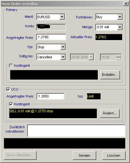du gibst zwei verschiedene orders auf (eine long, eine short). innerhalb dieser orders kannst du ja sowohl das kursziel als auch den stop eingeben.im beispiel du willst long gehen. akt. kurs 1,2763 trigger: 1,2790 kursziel: 1,2850; stop 1,2770