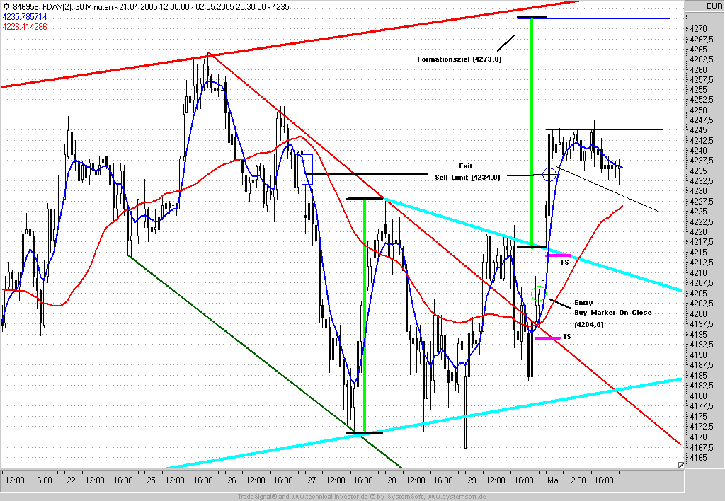 1. Grundsätzlich richtig! Ein Ausbruch aus dem symmetrischen Dreieck ist Grundvoraussetzung um das Setup aufrecht zu erhalten!