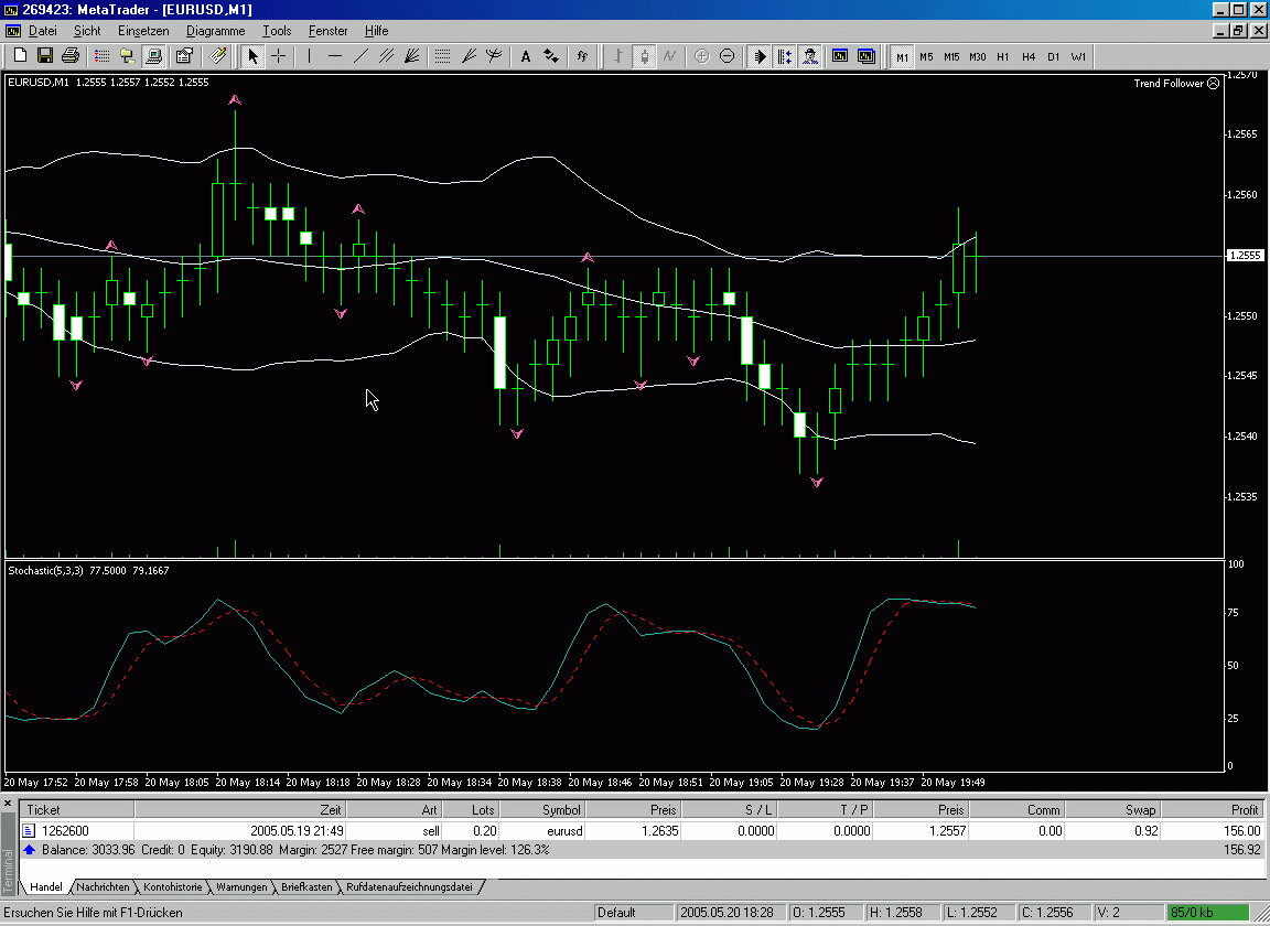 Handelst du nach dieser Methode erfolgreich? Vielleicht gehts ja mit Oanda und 1,5 pips Spread im Euro. Aber bei einem kurzen Test gefallen mir da anderen Zeitrahmen besser, 15min schauen da ganz gut aus, hat aber auch einige Fehlsignale in Trends. Werde die Sache im Demotrading mal im Auge behalten und etwas herumexperimentieren.