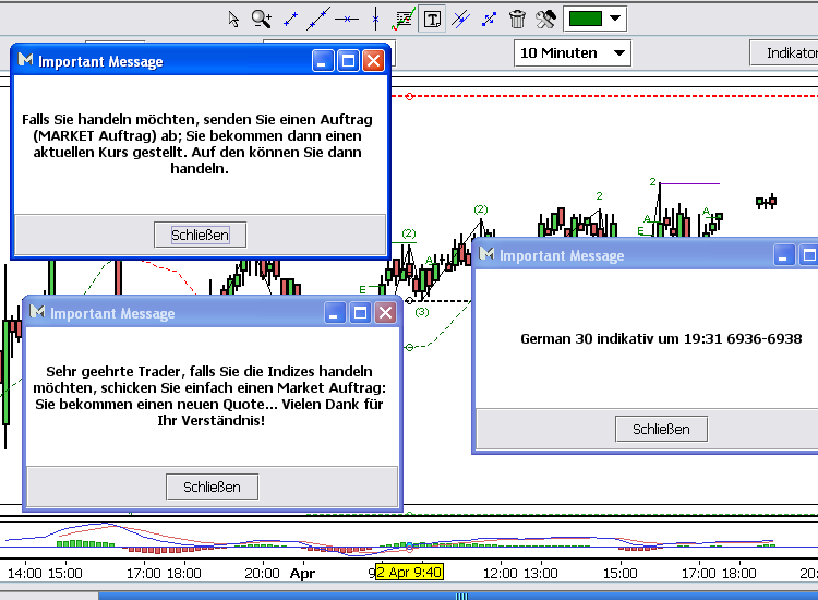 Komisch ist nur das man selbst bei 1 CFD auf den GERMAN30 mit Neuquotes belegt wird. Frage mich wie die Herren und Damen bitte schön 1 CFD absichern möchten.