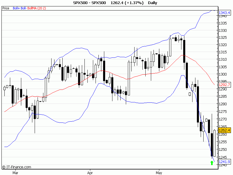 Anschließend ein piercing pattern, Tief innerhalb der BBD, also relativ höher. Heute ein hammer (so es denn nicht noch runterkracht). Zusammen eine W-Formation möglich, wie ausgiebig in Bollingers Buch diskutiert. Sieht nach Ende dieser Phase des Abwärtstrends aus. Aber - kann auch alles anders kommen.