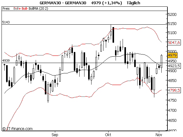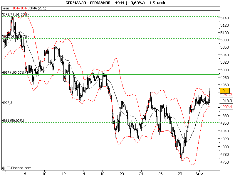 zwei absolute Ätztage. Die 4997 sind aktiviert, unterstützendes Fibo bei 4907 wurde heute getestet. Jetzt muß er über die 4939. Stop wird auf Einstand gezogen.