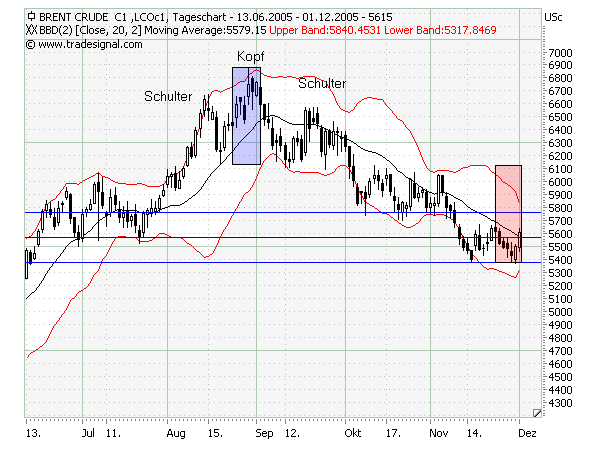 Ich möchte auf die Entwicklung im Brent Future aufmerksam machen. Das bullish engulfing wurde mit der gestringen Kerze bestätigt. Die untere Fibolinie per close nicht verletzt, die Kursziele der SKS sauber abgearbeitet. Die BBD sprechen inzwischen auch sehr deutlich für ein Ende dieser Abwärtsbewegung (wahrscheinlicher Kursraum wird eingegrenzt). Es könnte sich hier ein Doppelboden ausbilden mit anschließender W-Umkehrformation. Allerdings kommt nach Abwärts prinzipiell erst Seitwärts. Muß also nicht direkt hoch und kann natürlich noch weiter runter...