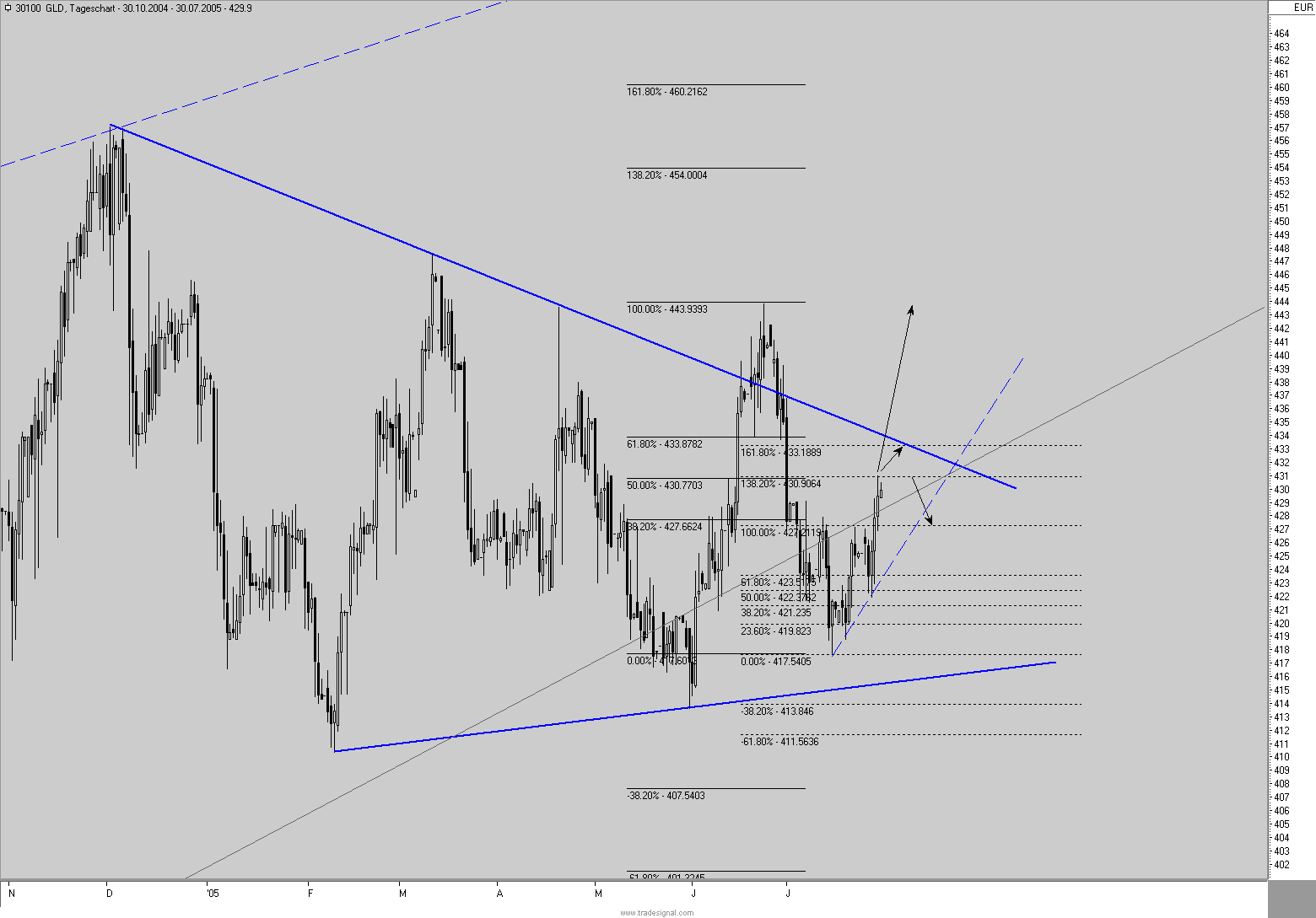 würdest du sagen 'ja, das läßt sich den vorangegangenen bewegungen herleiten', ob bspw. ein up-move zu 61,8% oder nur zu 38,2% korrigiert wird? oder ist es eher so, dass du eine ganze reihe von potentiellen ziel-/umkehrlinien in deinem chart hast, und dann halt handelst, wenn sich an einer dieser linien ein (u.u. ja auch nur schwaches) umkehrsignal zeigt, wie gestern beim close um 15:20?