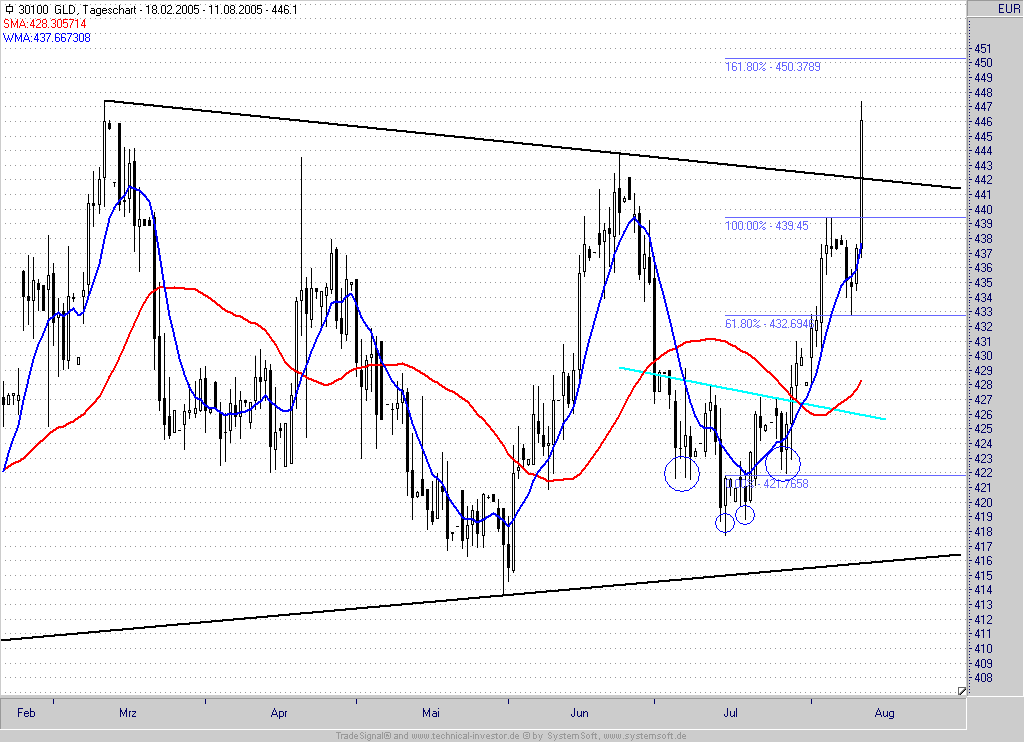 Im "Gold" erfolgte nach 38%-Korrektur bereits der Ausbruch aus der Formation
