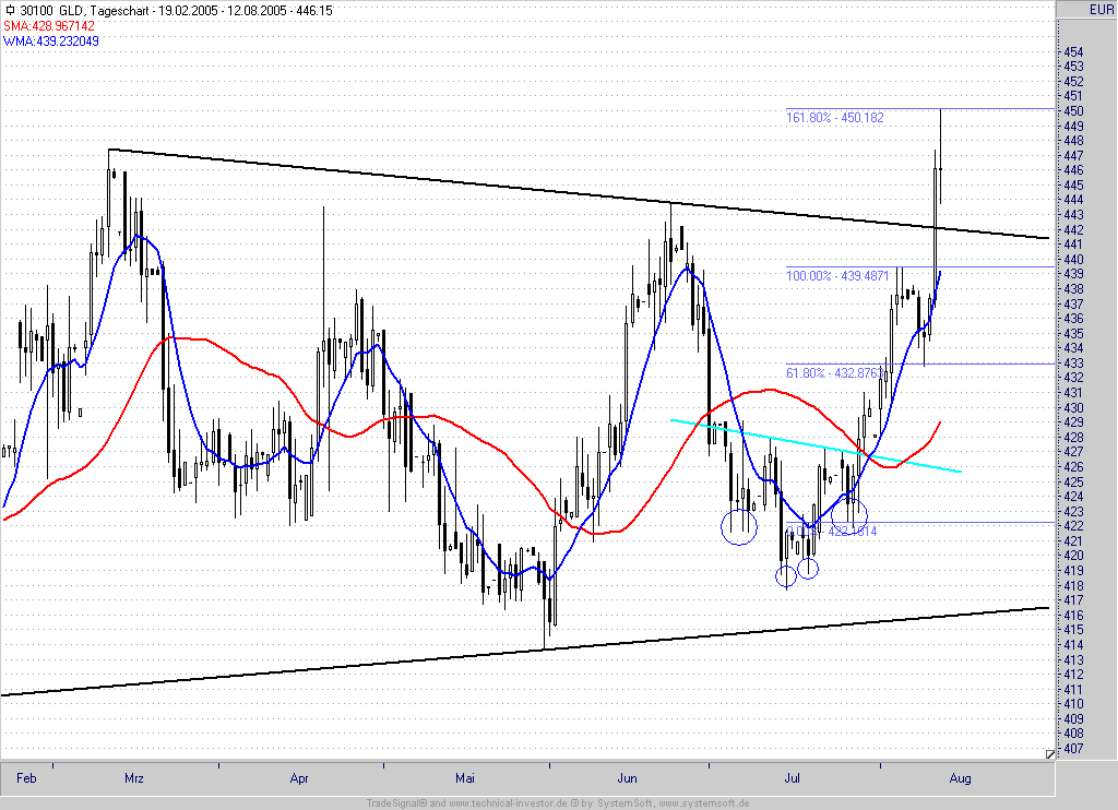 Im "Gold" erfolgte nach 38%-Korrektur bereits der Ausbruch aus der Formation