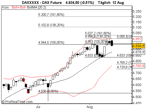(Ehrlich gesagt, das Beispiel von gestern war gar nicht so gut gewählt. Da hab ich in meinem Verständnis etwas Hasardeur gespielt, und daß die 161 erreicht wurde, hat mich eher verwundert; von den BBD her, war damit gar nicht so rechnen. Insofern auch Glück gehabt. Wahrscheinlich wollten ein paar die 5000 im FDax sehen.)