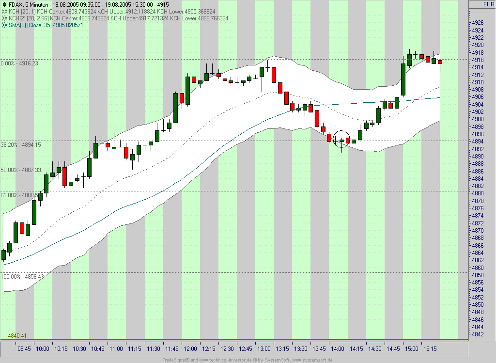 ein hammer an der unteren kch2-kante, der zudem am 38,2% retracement der gesamten aufwärtsbewegung des vormittags lag. noch dazu mit sehr geringem initial risk (bei stopp-setzung unter dem tief des hammers).