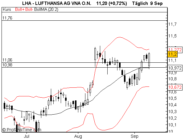 Es ging darum, dich darauf hinzuweisen, daß evtl die Bollinger Bänder allein, zumindest in herkömmlicher Betrachtungsweise, nicht unbedingt als Trigger geeignet sind, daß es doch aber schade ist, daß du soviel von der Bewegung veschenkst. Um dich etwas zu piesacken ;) deshalb auch nochmal ein Lufthansa Beispiel.