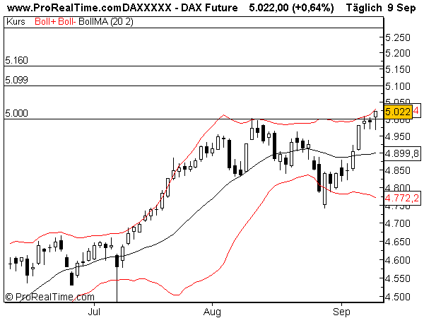 SP500 Future sieht nicht bearish aus. BBD+ und BBD- biegen sich auf, der gestern noch mögliche evening star am BBD+ wurde negiert. Mal sehen was der DAX zu sagt.