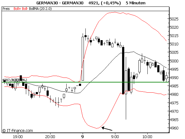 Ich bin bei einem eingedrehten unteren BBD sehr vorsichtig, was long angeht. Wenn eine Fiboextension erreicht ist und das untere BBD eingedreht ist, steige ich auf keinen Fall in eine long ein, dazu muß sich das BBD erst wieder bewegen. Wenn ich long bin, so wie heute morgen und der Kurs keine Anzeichen macht, weiter zu steigen, dann schließe ich die Position. Mag sein, daß ich so Punkte verschenke aber 20 Punkte langen mir. Ich meine, daß der Kurs in einer solchen Situation häufig nicht unmittelbar weiter steigt, evtl. nicht direkt korrigiert wie heute aber zumindest auf seitwärts dreht. Ich suche dann lieber einen re-entry.