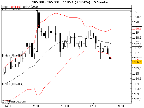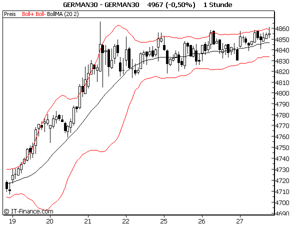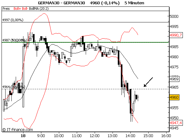 Wenn ich mir Deinen Chart anschaue, den Du eingestellt hast, dann sehe ich um 12:00 Uhr eine Verengung des "Kanals" danach gehen die Bänder immer weiter auseinander und der Kurs nach unten