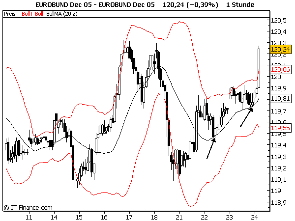 Im Chart habe ich regelkonforme Reentrymöglichkeiten intraday markiert. Nach der antizyklischen Einstiegsmöglichkeit, die ich im letzten posting dargestellt hatte, zwei weitere Punkte, um die Position risikofrei zu erhöhen. Wenn die Kerze so bleibt, entsteht das erste echte prozyklische Ausbruchssignal. Hier wäre mann dann schon mit 4-facher Kontraktzahl drin, ohne das Risiko für das Konto erhöht zu haben.