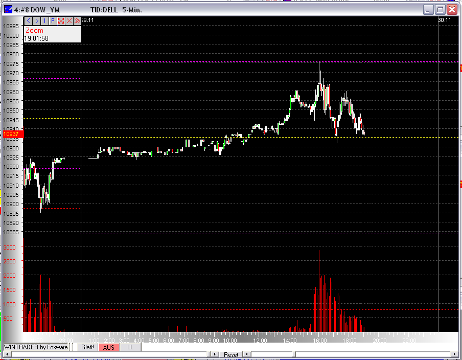 so komme ich mit systemen, die versuchen, ein underlying 'durchzuhandeln' nicht sonderlich gut klar (auch wenn amazon vielleicht widersprechen würde, dass es sich bei dax5plus überhaupt um einen solchen ansatz handelte). mir legt es mehr in kleinen zeitfenstern (5 min u. 1 min) muster zu handeln, die mir durch intensive beobachtung vertraut sind. da gibt es über den tag verstreut ne menge gelegenheiten, trades durchzuführen die meinem 'beuteraster' entsprechen, schnelle gewinnmitnahme inclusive.
