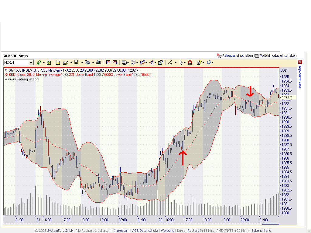 Die Bänder verlaufen ja in einem Abstand von 2 Standardabweichungen von einem 20er MA.