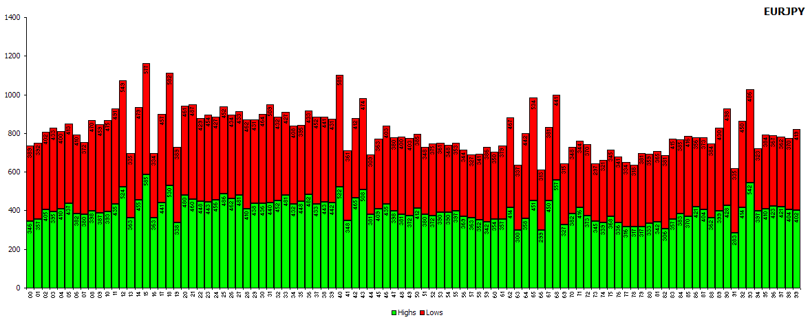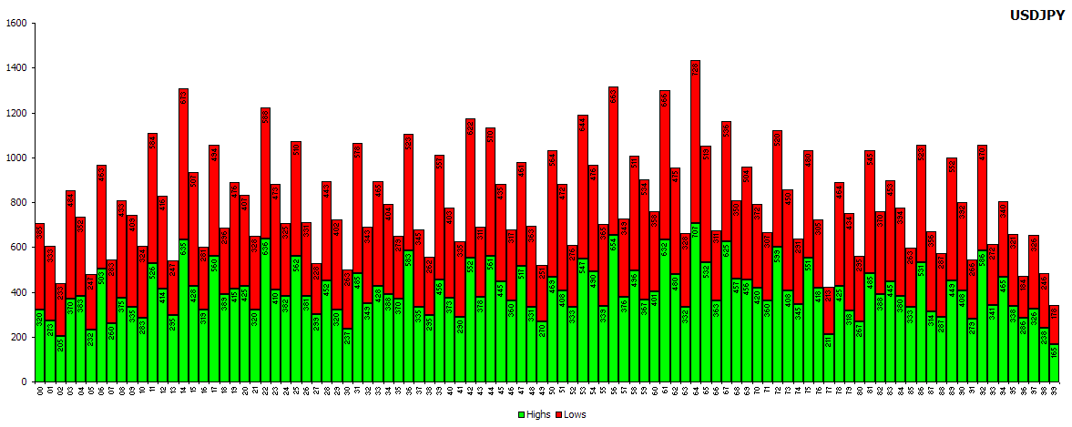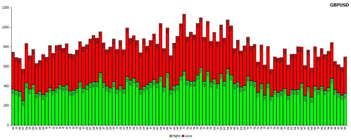 Ich kann leider nur kurz in meinen Arbeitspausen was posten. Wollte schon längst auf das Problem der Trendwenden insofern eingehen, daß man den Zahlen leider nicht entnehmen kann, inwieweit z.B.der Sweetpoint nur ganz kurz in einer Kerze erreicht wird und dann der Kurs sofort in die andere Richtung maschiert. Beim Cable 00 ist das ja wohl häufiger der Fall, beim Euro nach meiner Beobachtung nicht. Dadurch kommt der 00 im Cable in dem unten aufgeführten Zahlenwerk gar nicht häufiger vor, ist aber trotzdem höchst relevant.