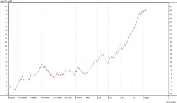 Also z.B. bei 3 positiven Tagen (Signal 1) ergibt sich die Zahl 3. Bei dem nächsten negativen Tag (Signal –1) wird einer abgezogen. Es ergibt sich die Zahl 2, usw.