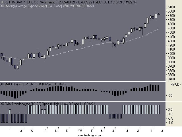 den MACD und die Richtung zweier gleitender Durchschnitte.