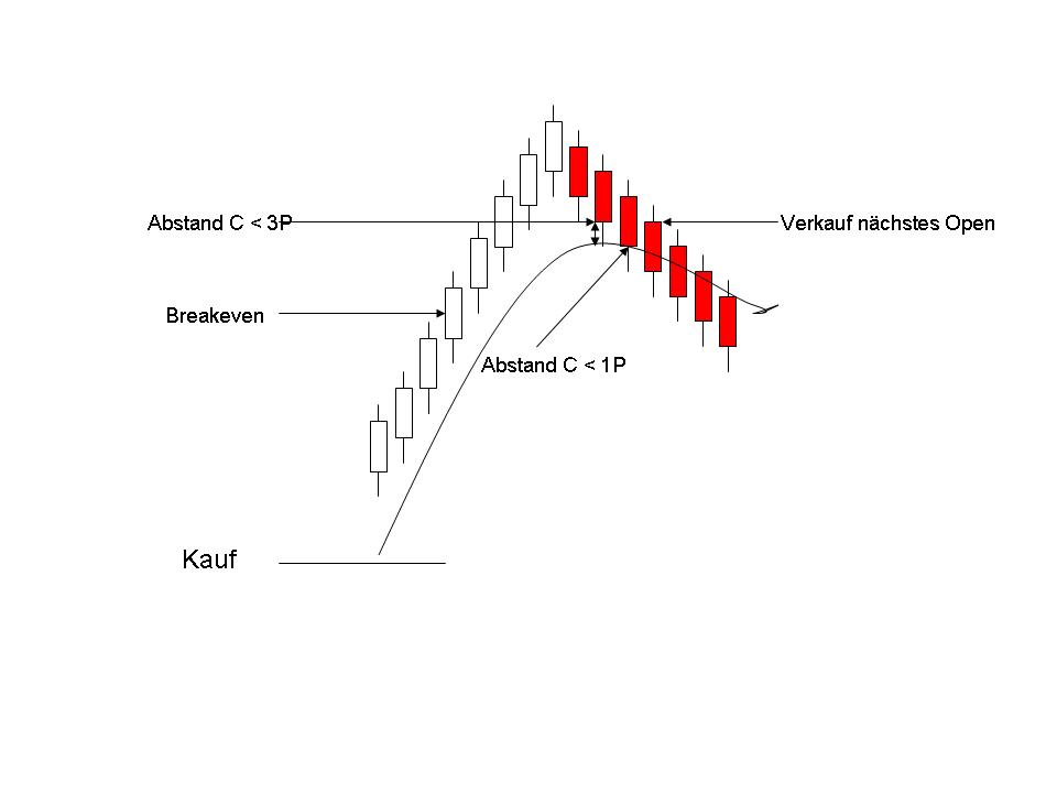 "Aktiviere einen Trailing-Stop (TS1) auf Periodenschlussbasis, sofern dieser* mindestens 3,0P unter dem letzten Periodenclose liegt.