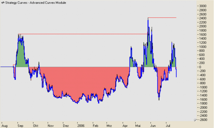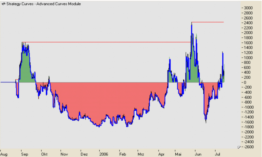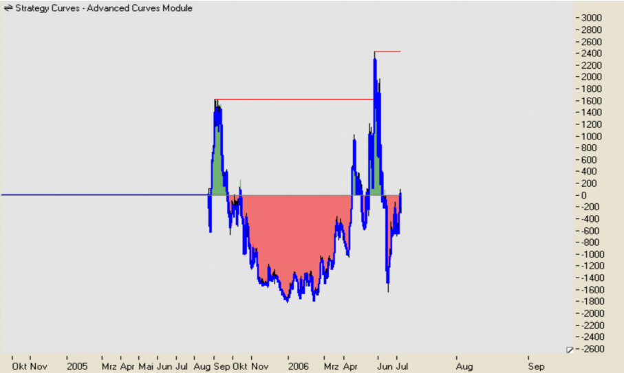 Seit dem 22.09.2005 sind wir das erste mal wieder im positiven Bereich gelandet. Sollte es das Hoch der Equtiykurve von 1.627,00 EUR übersteigen, wäre die erste Drawdown Phase vorüber. Die erste Draw Down Phase haben wir hinter uns. Es hat ein höheres Hoch als im August 2005 gestellt.