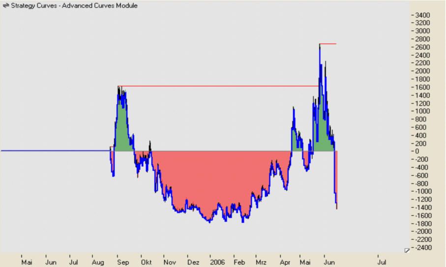 Seit dem 22.09.2005 sind wir das erste mal wieder im positiven Bereich gelandet. Sollte es das Hoch der Equtiykurve von 1.627,00 EUR übersteigen, wäre die erste Drawdown Phase vorüber. Die erste Draw Down Phase haben wir hinter uns. Es hat ein höheres Hoch als im August 2005 gestellt.