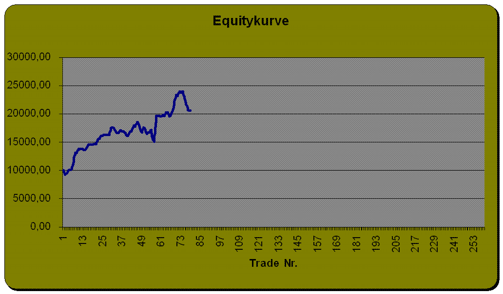 eine Frage zur Stopp-Strategie: Werden diese Intraday gehändelt und wenn ja,wurde Slippage vorgesehen? Wenn ein Stopp getriggert wird könnte dies auch per Gap passieren. Das widerum heisst, das man den Stopp schlechter ausgeführt bekommt! Setzt man Stopp-Limit Orders wird der Stopp zum Limit ausgeführt! Die Gefahr ist das wenn der Stopp mittels Gap getriggert wird dieser erst zum Limit ausgelöst wird! Dabei ist es egal ob man immer weiter verliert oder nicht! Sicher ist nur die erste Variante und die erfordert Slippage (Stopp-Modell by IB).Ich weiss nicht wie TS die Stopps berechnet oder welche Möglichkeiten sich bieten aber damit man sich nicht selbst unterläuft ist es empfehlenswert dies genau abzuklären da sonst das komplette System nicht stimmig ist und eine erneute