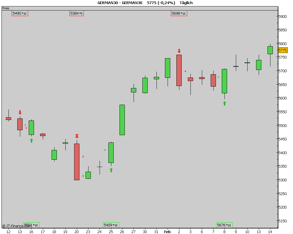 so nun kommt es darauf an, ob der Wochenpivot hält. Der liegt gerade bei 5770 vom Monatchart. Was mich nachdenklich macht, ist das baerishe Engulfing auf den Wochenchart. Hält die 5770 werden wir wahrscheinlich wieder nach oben abdrehen. DAS OBV auf Tag divergiert auch positiv, d. h. die Chance besteht. Mal abwarten, ob wir weiter nach oben ziehen.