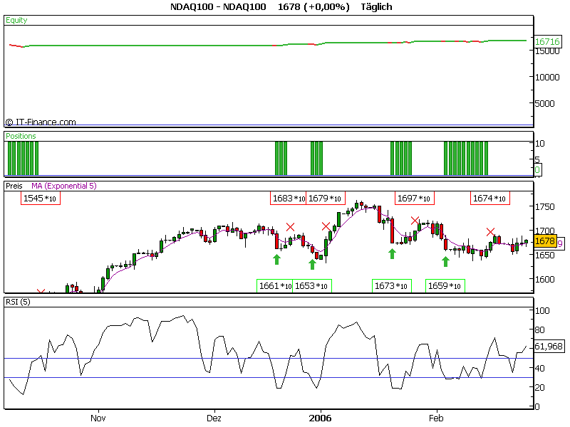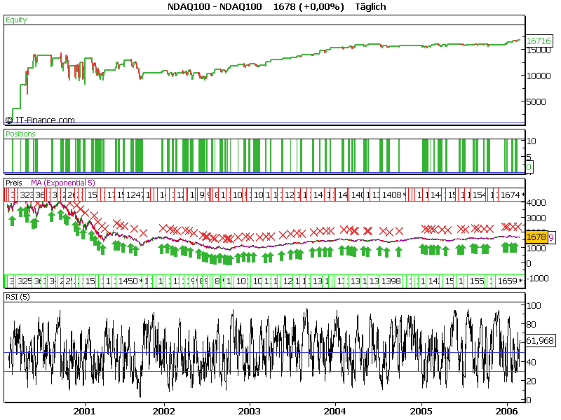 nun zum Thema. Das läßt sich tatsächlich nur auf den nasdaq anwenden, auf den dow, wie auf andere indizies kannst du es vergessen. aber ich stimme dem nicht zu, das wenn ein System auf ein indizes funzt, es auf andere auch funzen muß. jeder indizes hat, wie auch jede aktie ein eigenleben. ich sehe es als selbständigen organismus an. mein kleiner Indizes Zoo kann man es auch nennen. ich denke Vaughn Okumura würde es auf seiner Internet seite bekannt geben, wenn es auf anderen indizes funzen würde. Es paßt nur auf den Nasdaq, sonst auf nix. Ich denke bis zum Jahr 1991 zurückgetestet, müßte schon eine gute Information sein, dass es wirklich funktioniert.