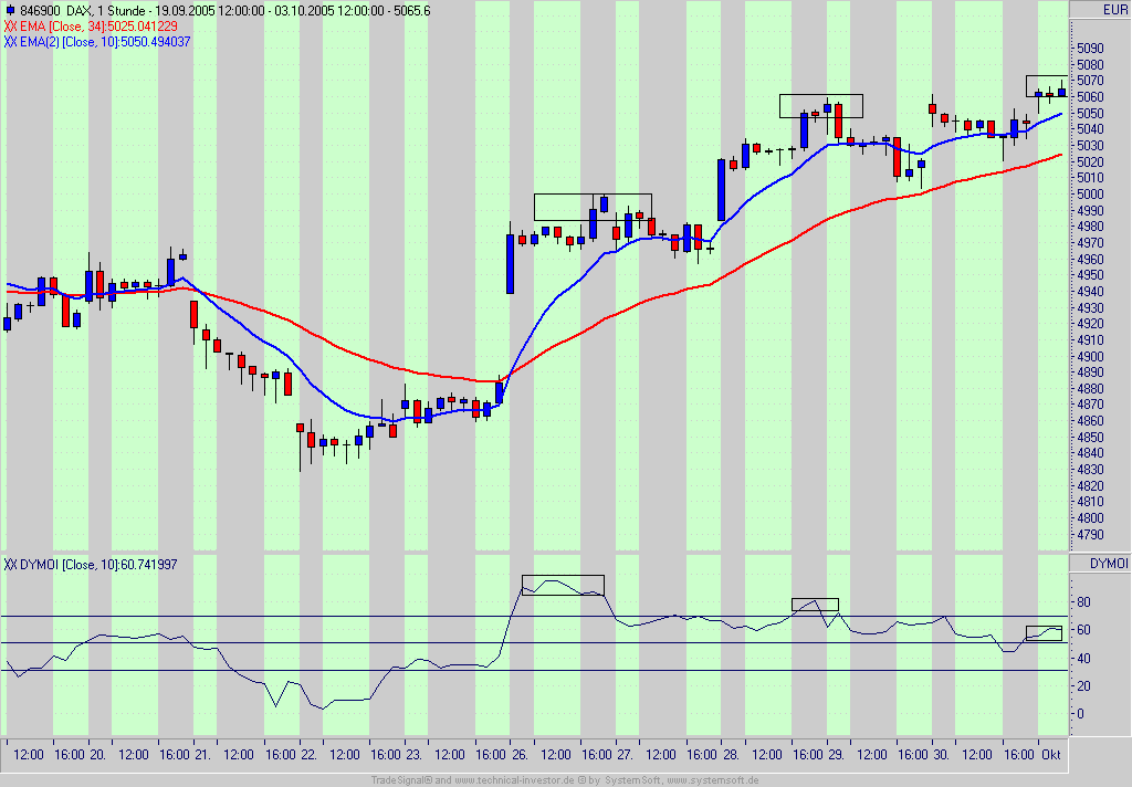 der dax 60 ist long-aber die neuen hochs werden in den spitzen von tieferen dymoi -tops begleitet.für mich heißt das,die long posi eng abzusichern,aber auf keinen fall shorten(auch wenn es so kommt)der dymoi ist immer noch >50 und ema 10 > ema34(da kann man auch andere GD nehmen wie den kama 50 -