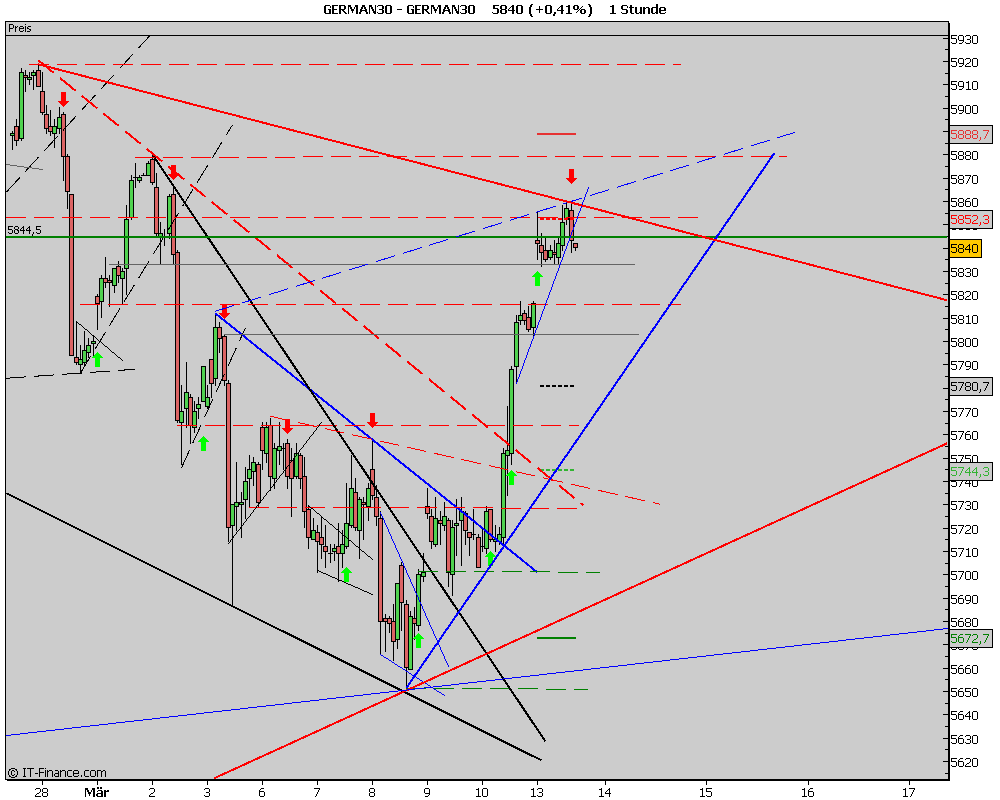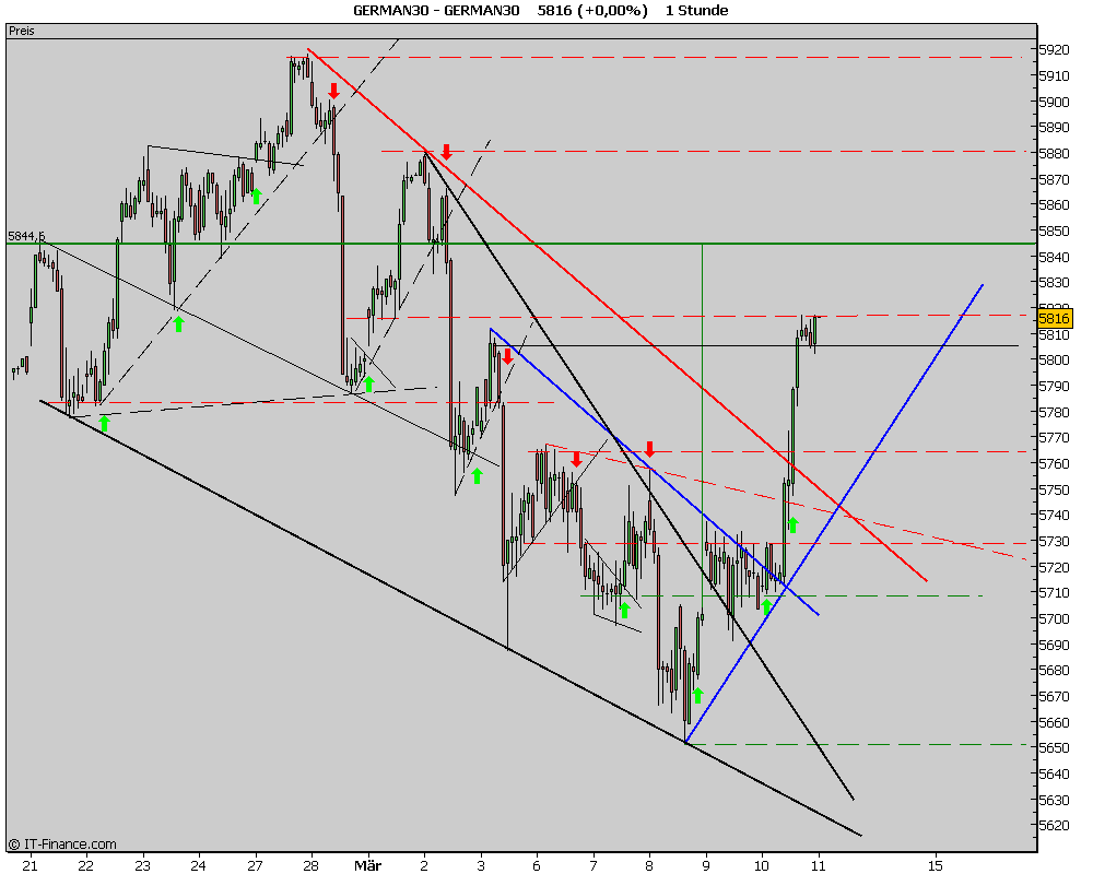 da kann ich dir leider nicht zustimmen. Wir haben im Tageschart den ersten Widerstand gepackt. Der war bei 5850 Close 5855 pkt. Ich denke eher, wir laufen nun in Richtung 5897 pkt. Das ist der nächste Widerstand. Aber wir werden sehen, wem der Markt recht gibt.